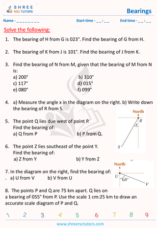 Explore our collection of GCSE Maths worksheets on Bearings. Master the skill of using angles to describe the direction of one point from another. These worksheets are designed to help students understand and apply the concept of bearings, a crucial topic in the GCSE Maths curriculum. Strengthen your skills and boost your grades with our comprehensive resources.