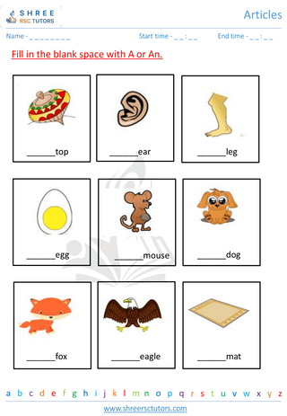Grade 1  English worksheet: Articles