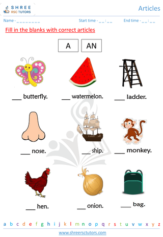 Grade 1  English worksheet: Articles