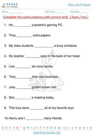 Explore our collection of Grade 1 English worksheets focusing on the proper use of "Has and Have." These resources are designed to help young learners grasp the concept of subject-verb agreement in simple sentences. Enhance your child's grammar skills with fun and interactive exercises aligned with the Grade 1 curriculum.