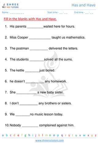 Grade 1  English worksheet: Has and Have