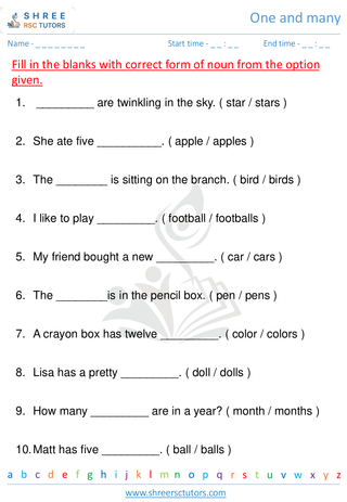 Grade 1  English worksheet: One and many