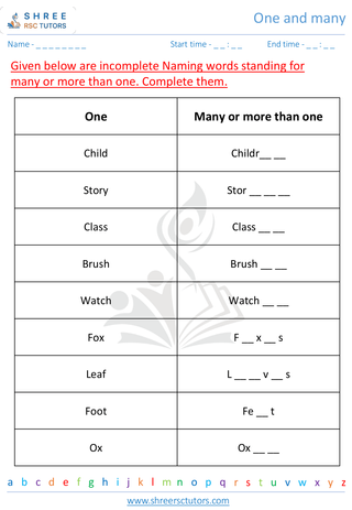 Explore our collection of Grade 1 worksheets on "One and Many" to help students grasp the concept of singular and plural forms. These engaging exercises are designed to enhance understanding and usage of singular and plural nouns, aligning with the curriculum to build a strong foundation in English language skills.