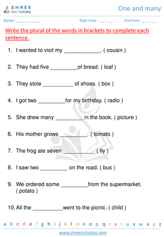 Grade 1  English worksheet: One and many