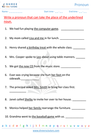 Grade 1  English worksheet: Pronoun