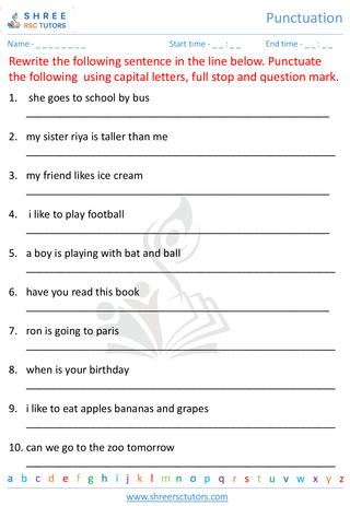 Grade 1  English worksheet: Punctuation