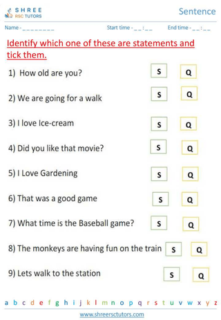 Grade 1  English worksheet: Sentence