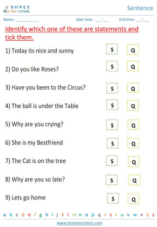 Grade 1  English worksheet: Sentence