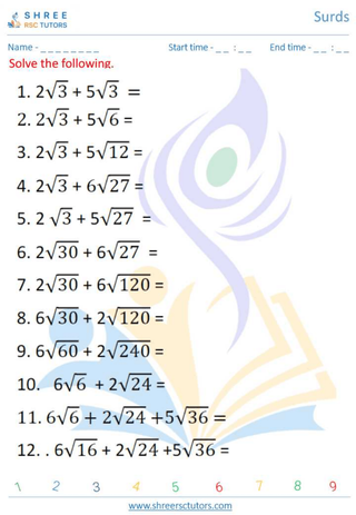 Enhance your Grade 12 Maths skills with our comprehensive Surds worksheets. Master the manipulation of square roots and irrational numbers with step-by-step exercises designed to boost your understanding and confidence. Perfect for students seeking to excel in their curriculum and beyond. Unlock the world of Surds today!