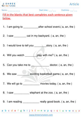 Let's learn the magic of language with our Grade 2 Articles Worksheets! These special sheets are like friendly guides that help kids understand the use of "a," "an," and "the" in sentences. Join the fun activities where children practice using these words to make sentences sound just perfect. It's like solving a puzzle to create amazing sentences!