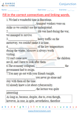 Grade 2  English worksheet: Conjunctions