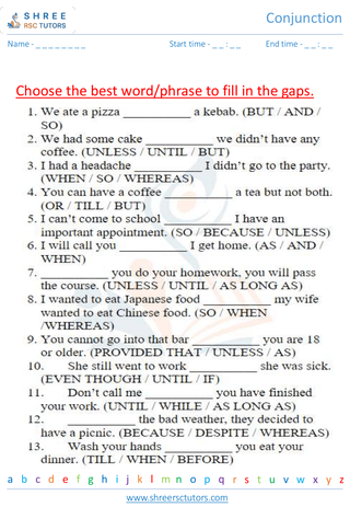 Grade 2  English worksheet: Conjunctions