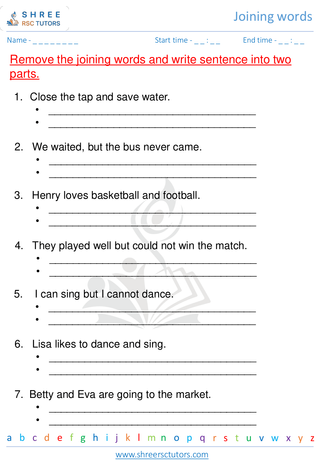Grade 2  English worksheet: Joining words