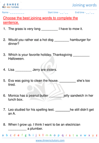 Grade 2  English worksheet: Joining words