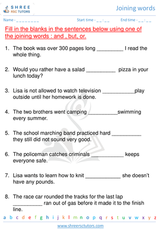 Grade 2  English worksheet: Joining words
