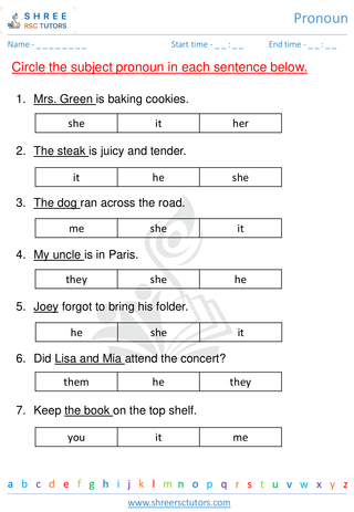 Grade 2  English worksheet: Pronoun