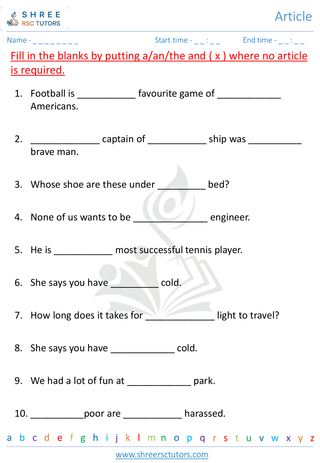 Grade 3  English worksheet: Articles