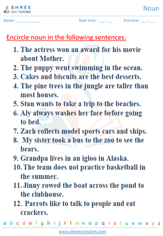 Grade 3  English worksheet: Noun
