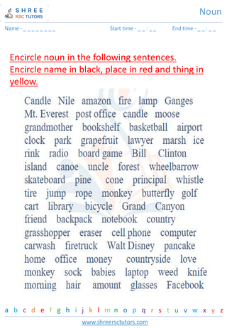Grade 3  English worksheet: Noun