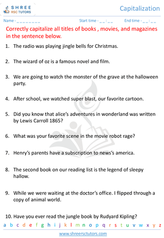 Grade 4  English worksheet: Capitalization