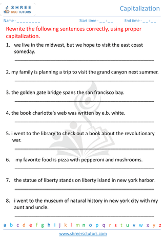 Enhance your Grade 4 students' writing skills with our Capitalization worksheets. From proper nouns to the first word in a sentence, these exercises will reinforce the rules of capitalization in a fun and interactive way. Help your students master this essential skill for clear and effective communication in English.