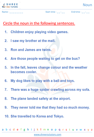 Grade 4  English worksheet: Noun