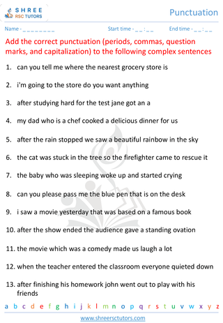 Grade 4  English worksheet: Punctuation