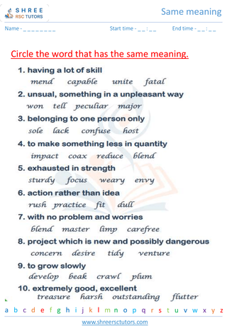 Grade 4  English worksheet: Same meaning