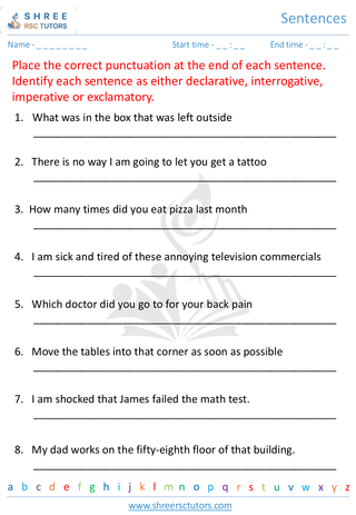 Grade 4  English worksheet: Sentence