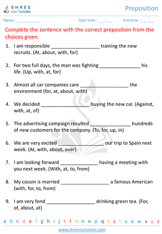 Grade 5  English worksheet: Preposition