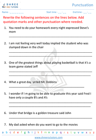 Grade 5  English worksheet: Punctuation