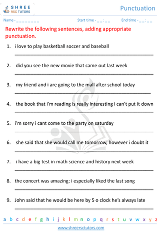 Grade 5  English worksheet: Punctuation