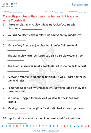Grade 5  English worksheet: Sentence
