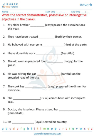 Grade 6  English worksheet: Adverb