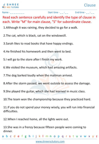 Grade 6  English worksheet: Clause
