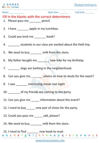 Grade 6  English worksheet: Determiners
