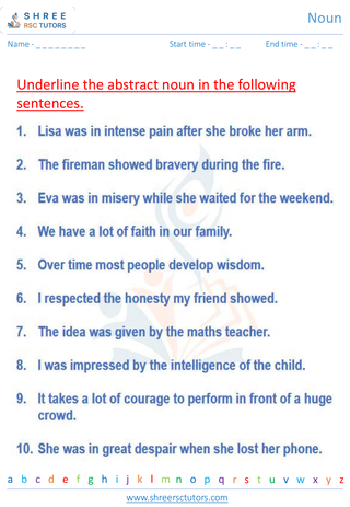 Grade 6  English worksheet: Noun