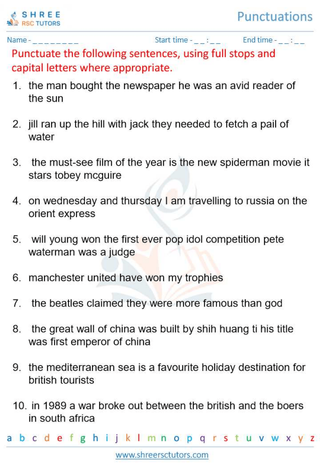 Grade 6  English worksheet: Punctuation
