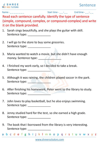 Grade 6  English worksheet: Sentence
