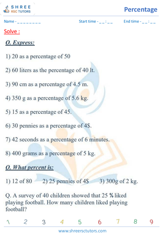 Grade 6  Maths worksheet: Percentage math