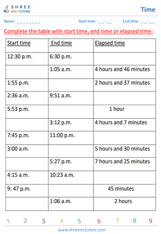 The Grade 6 Time and Duration Worksheet is like a clock friend for students to easily learn and practice time concepts. It helps them understand and analyze time in a simple way. The worksheet covers various aspects of time, making it easy for students to grasp the concepts. They learn about hours, minutes, and seconds, turning time into a friendly adventure. With this worksheet, students become pros at reading and interpreting time, making math more accessible and enjoyable for Grade 6.