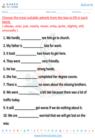 Grade 7  English worksheet: Adverb