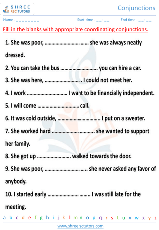 Grade 7  English worksheet: Conjunction