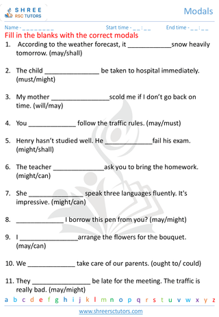 Grade 7 Modals Worksheets are like language superheroes that make understanding expressing possibility, ability, and necessity easy and fun! These sheets help you grasp modals - special words like "can," "must," and "should." With colorful tasks, you practice using modals to express ideas. From abilities like "can swim" to necessities like "must finish," these worksheets turn learning into an enjoyable adventure.