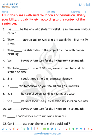 Grade 7 Modals Worksheets are like language superheroes that make understanding expressing possibility, ability, and necessity easy and fun! These sheets help you grasp modals - special words like "can," "must," and "should." With colorful tasks, you practice using modals to express ideas. From abilities like "can swim" to necessities like "must finish," these worksheets turn learning into an enjoyable adventure.