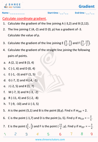 Grade 9  Maths worksheet: Slope-Rate of Change