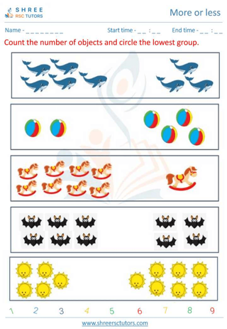 Kindergarten  Maths worksheet: More or less