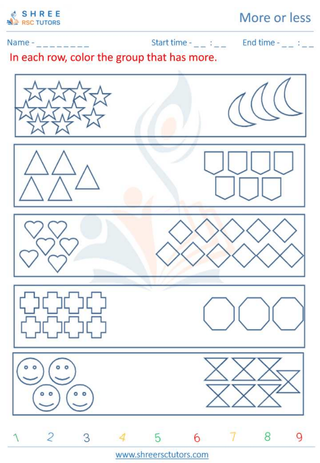 Kindergarten  Maths worksheet: More or less