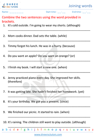 Improve your child's grammar skills with our collection of "Join Words" worksheets designed for KS1 SATs grade students. These worksheets focus on combining words to form compound words, phrases, and sentences. Enhance your child's understanding of language structure and prepare them for success in their SATs exams.